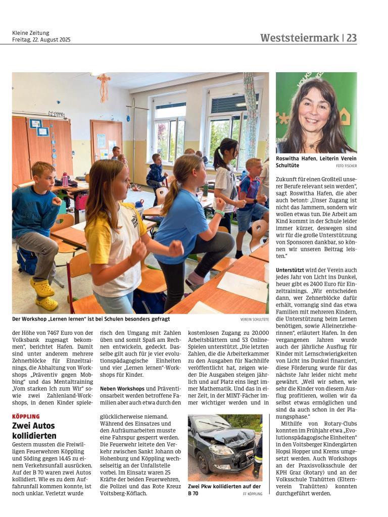 Kleine Zeitung: 24.08.2022, die Zurodung der Workshops zu den Schulen musste korrigiert werden.